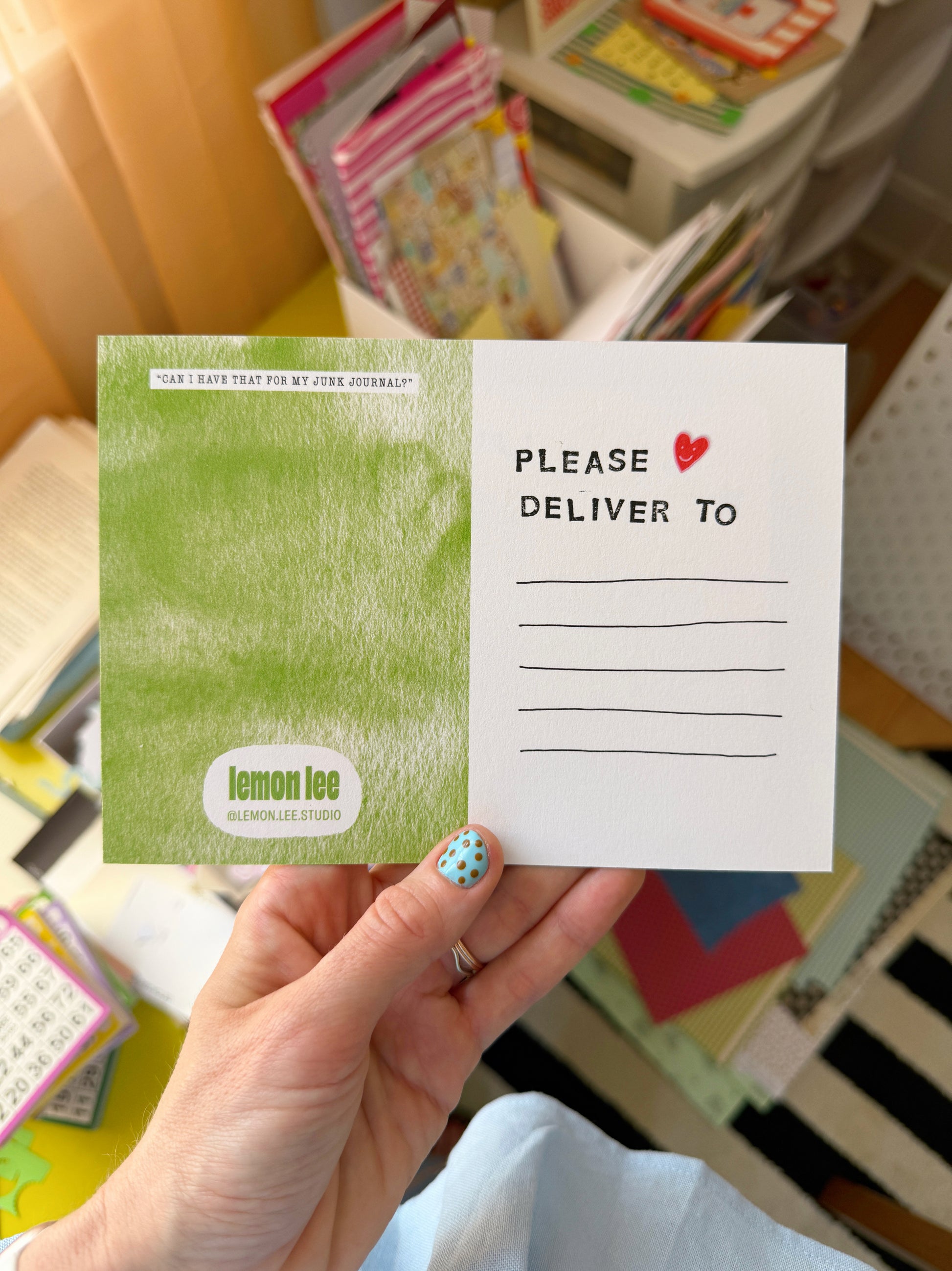 - 5x7 Double-sided postcard with artwork by Lemon Lee/Brittney Braemer