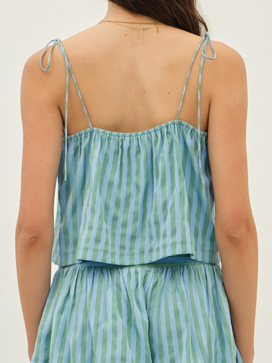 How stinkin' cute is the Mia Striped Tank?! Featuring a loose silhouette, slight cropping, tie straps, and a ruched neckline. Pair this with the matching Mia Striped Shorts for an adorable summer look, or any of your fave bottoms!