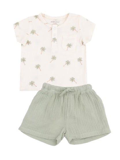 Keep your little one comfy and stylish with the Palm Trees Shirt + Shorts Set! The ribbed modal Henley top features a charming button-up design and pocket detail, adding a timeless touch of charm. Paired with soft and breathable French terry shorts, this set is perfect for sunny adventures, playdates, or cozy days at home.