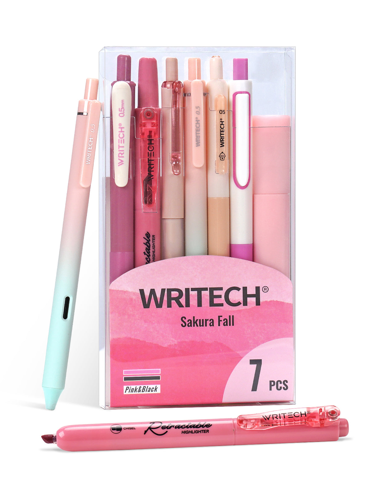 - Includes 5 gel pens and 2 highlighters.