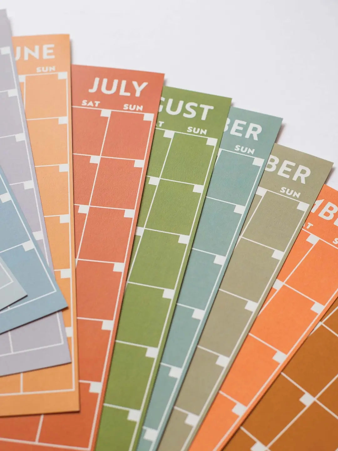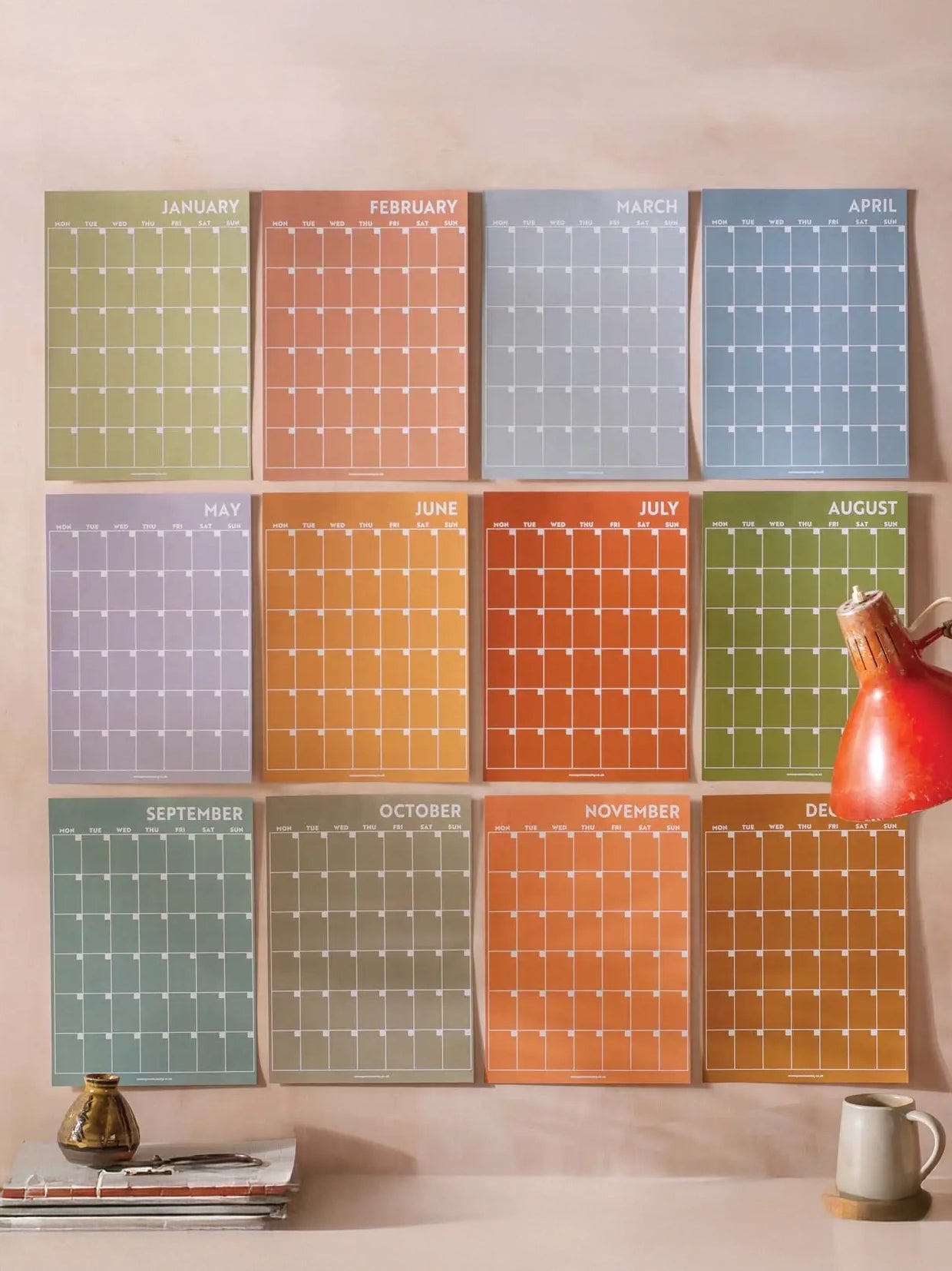 This calendar is desirable all year round, as the user adds the dates in as they need. A 12-page, undated planner which can be hung as a large wall planner or as individual A3 prints. Bold, fun colors in modern typography with a minimalist inspired grid. It's 100% recycled and comes packaged in environmentally friendly packaging—a recycled board backing and clear plastic free sleeve—with a sticker to show the full product spec and visual. Please note: the week starts Monday.