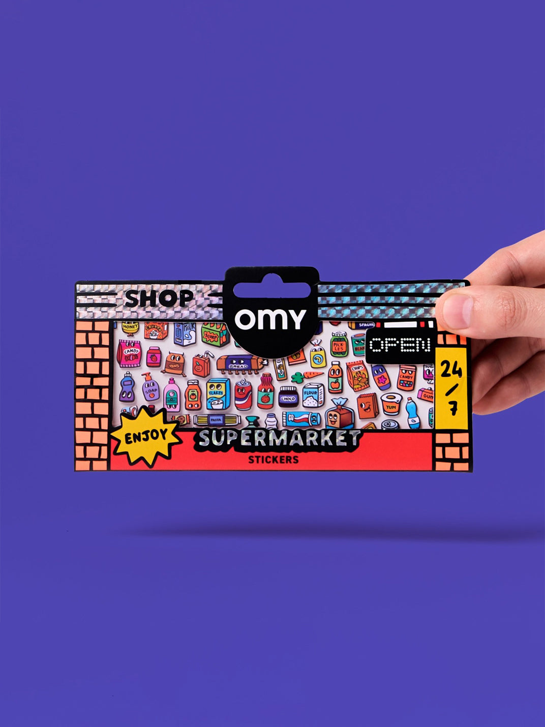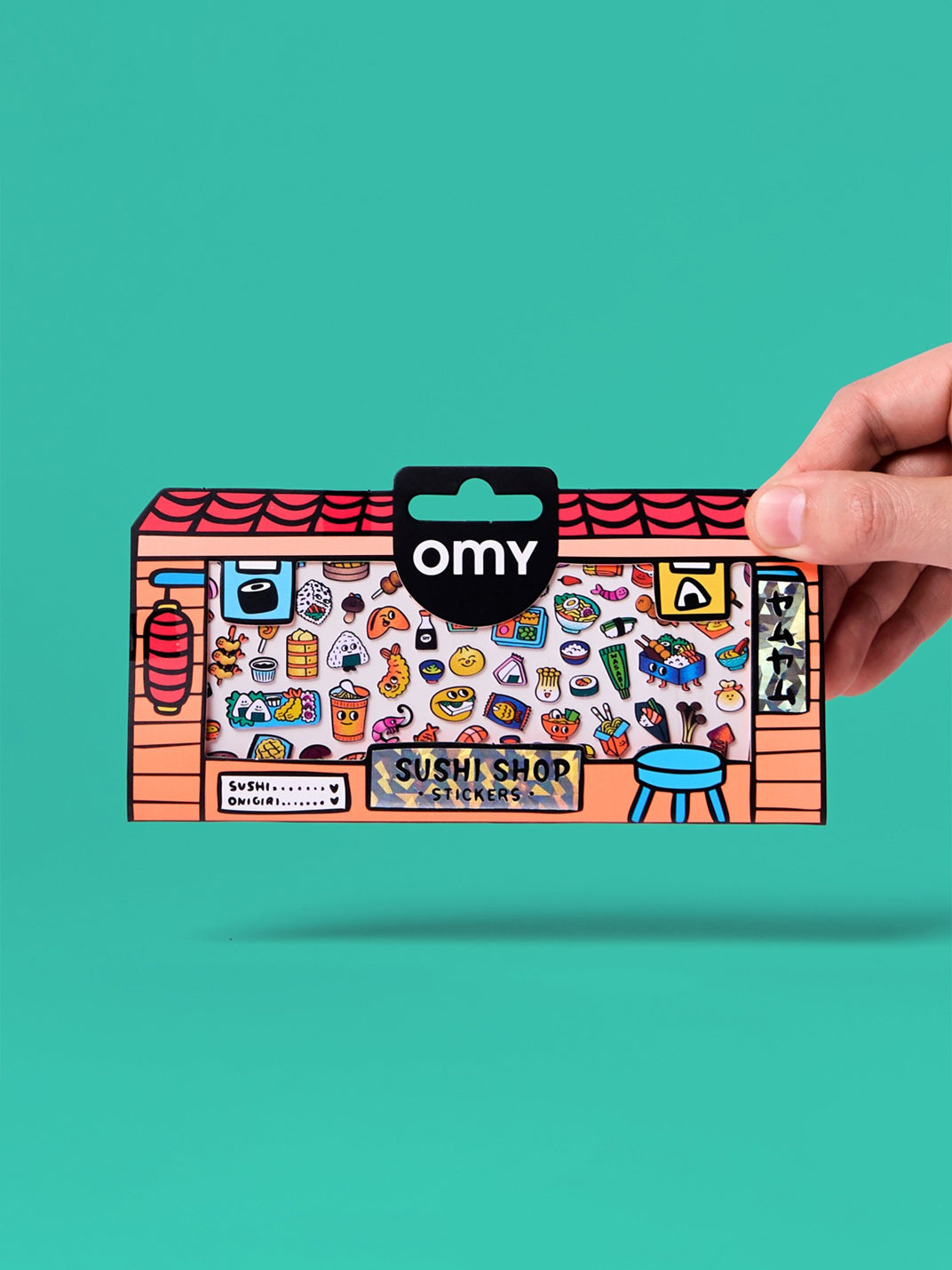 A fun and colorful assortment featuring XS sticker sheets, inspired by everyday shops and markets. Each sheet highlights a different theme—from Parisian cafés and sushi shops to bakeries and vibrant food stands.